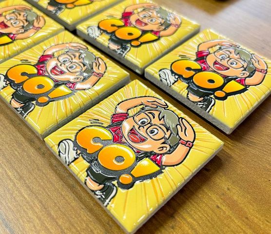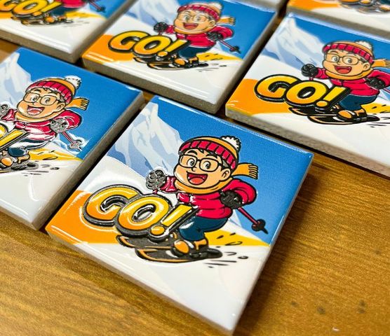 美濃焼のタイルにデザインを施した、オリジナルのタイルマグネットです。